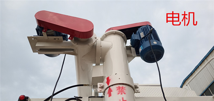 上裝罐體:罐體材質(zhì)采用4mm優(yōu)質(zhì)碳鋼板,整車3條絞龍,由3個(gè)5.5KW電機(jī)380V外接電源帶動(dòng)頂部絞龍用液壓控制舉升,可左右旋轉(zhuǎn)180°。罐體內(nèi)分為貳個(gè)倉,可以獨(dú)立控制各分倉卸料順序和速度。