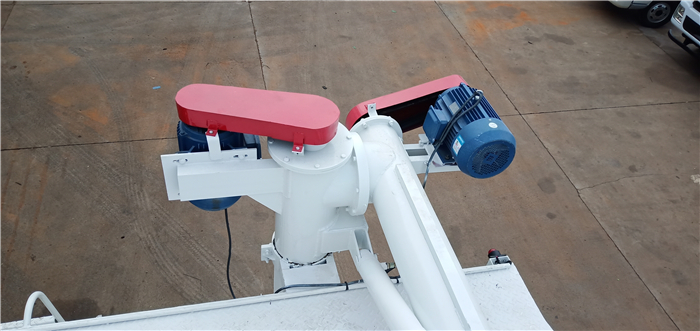 上裝罐體:罐體材質采用4mm優(yōu)質碳鋼板,整車3條絞龍,由3個5.5KW電機380V外接電源帶動頂部絞龍用液壓控制舉升,可左右旋轉180°。罐體內(nèi)分為四個倉,可以獨立控制各分倉卸料順序和速度。(備注:此報價為標配,國產(chǎn)電機,德力西電柜)