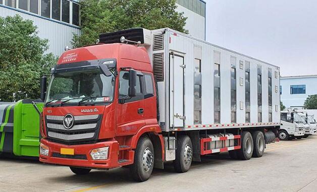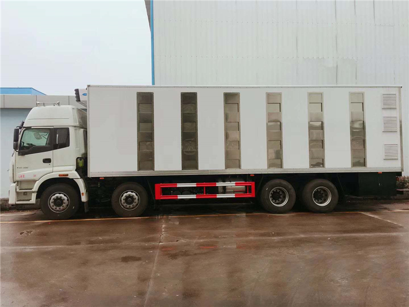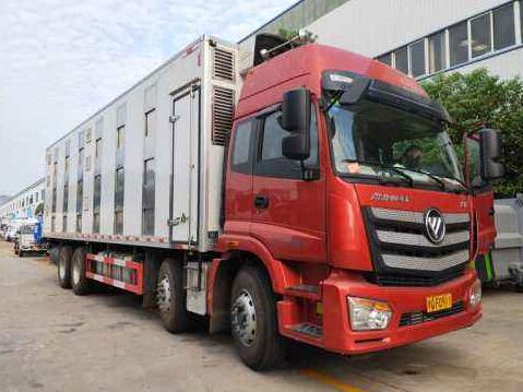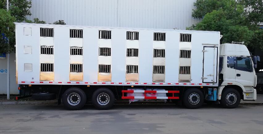 【豬苗車】上裝配置:外玻璃鋼,內(nèi)不銹鋼,兩層液壓升降層板,尾部液壓翻轉(zhuǎn)上豬平臺(tái),層板為不銹鋼骨架鋪鋁花紋板。外部電動(dòng)升降窗,排氣扇,柴油發(fā)電機(jī),暖風(fēng)加熱,喂水系統(tǒng),凈水箱、污水箱,箱內(nèi)攝像頭監(jiān)控,倒車影像,凱利制冷機(jī)組。(油暖加熱為選裝部件)整車長(zhǎng)度12000*2550*3970,箱體長(zhǎng)度9600*2340*2540(8660 裝載長(zhǎng)),發(fā)動(dòng)機(jī):康明斯機(jī)320.